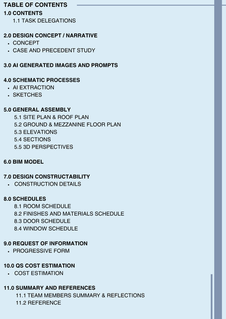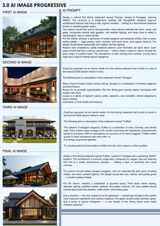 This project offered a valuable opportunity to engage in a real-world simulation of interdisciplinary collaboration between architecture and quantity surveying. Working as a team to design a 2,500m² fine dining restaurant in Putrajaya, we moved through the stages of AI-assisted concept development, schematic planning, technical detailing, and documentation for cost estimation. Each task highlighted the importance of bridging creativity with constructability.